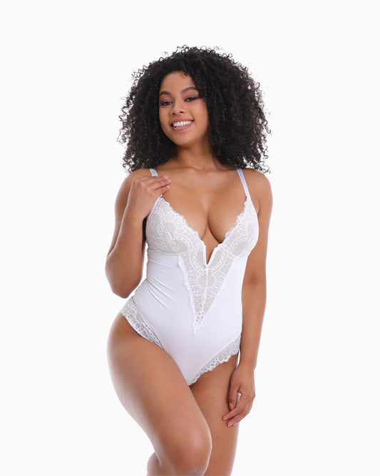 V-Neck Half Laced Bodysuit